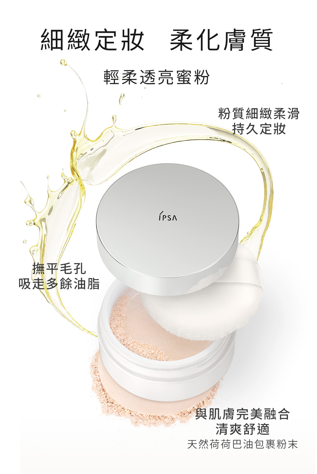 輕柔透亮蜜粉能吸走多餘油脂及提亮膚色,令妝效更持久貼服。 嶄新配方的粉質更細緻柔滑,能瞬間撫平毛孔及提亮膚色, 吸走多餘油脂,令妝效更持久貼服,水潤透亮。