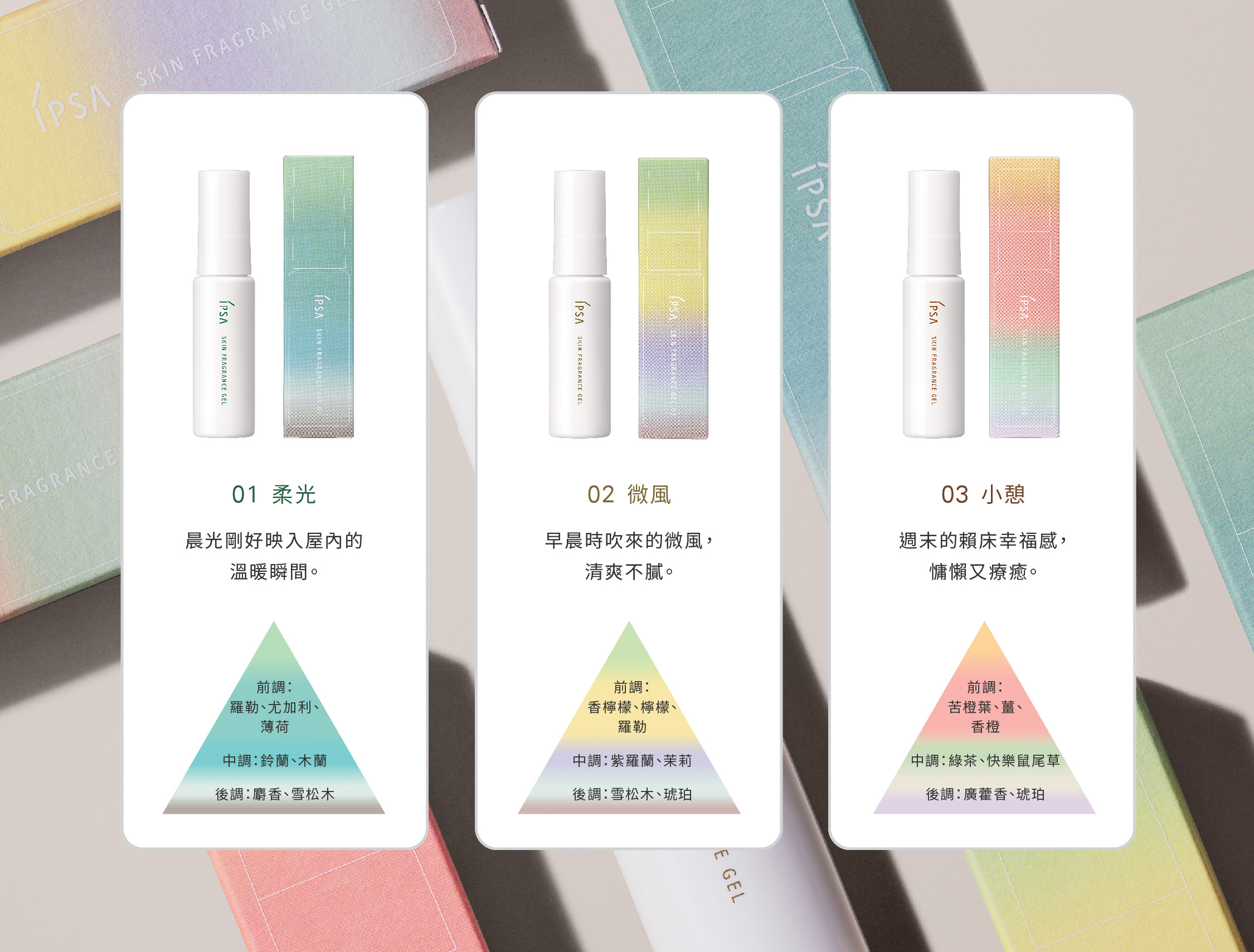 IPSA 親膚平衡調香凝露助您專注於呼吸,並讓身心共同感受香氣。此產品融合了自然的芬芳,如鮮花、水果、柔和的樹木及草本植物。當您渴望煥然一新,當你需要平靜放鬆,各種香氛都能讓您墊日感受到舒適自在的自我。