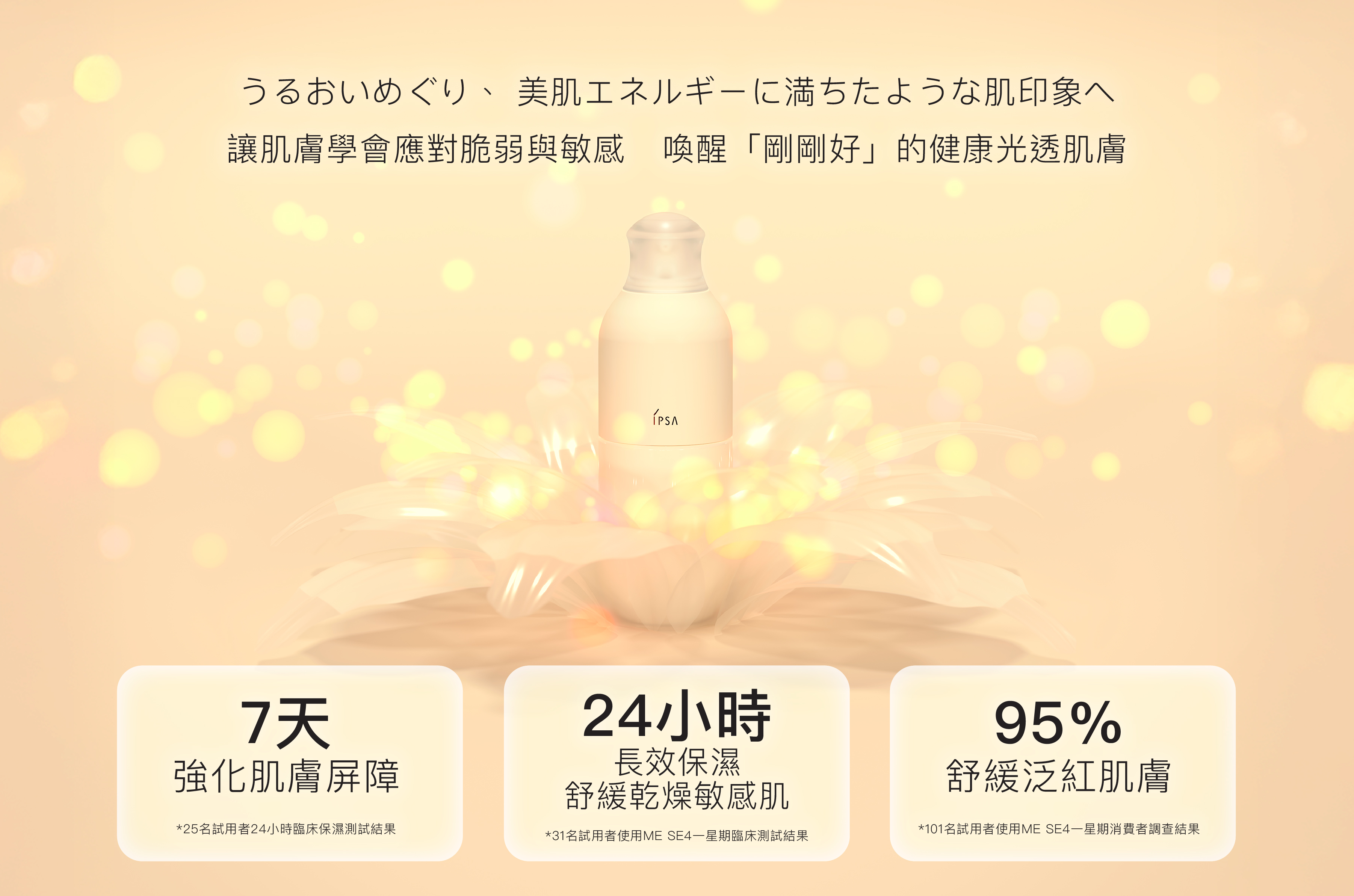40年的肌膚研究經驗,讓IPSA充分了解敏感肌的這份勇氣,推出全新ME。自律光透美肌乳 (敏感配方) 陪 伴化解不安,為敏感肌膚修復肌膚屏障,重回「剛剛好」的狀態,讓脆弱變成值得被珍視的獨特之美。